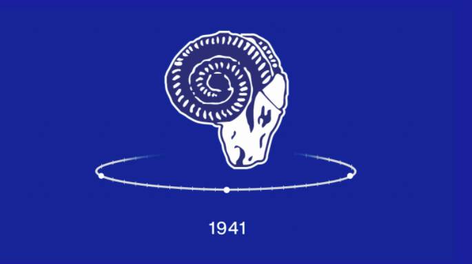 From 1937 to 1942, this was the logo for the Los Angeles Rams. The original design was a rough blue and white sketch of a ram's head, quite different from the modern logo featuring curved horns with "LA" in the center.