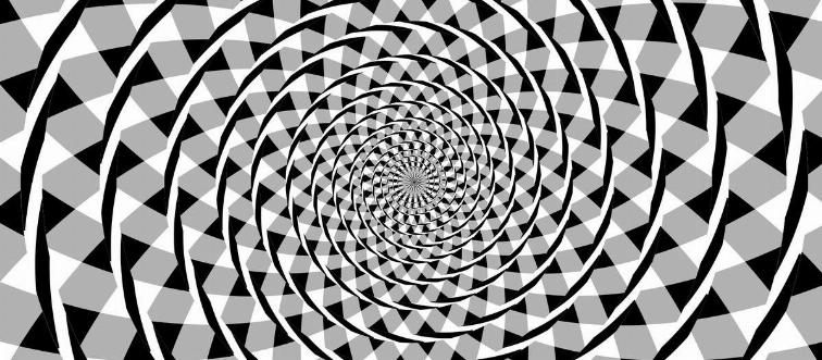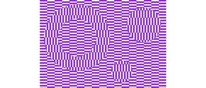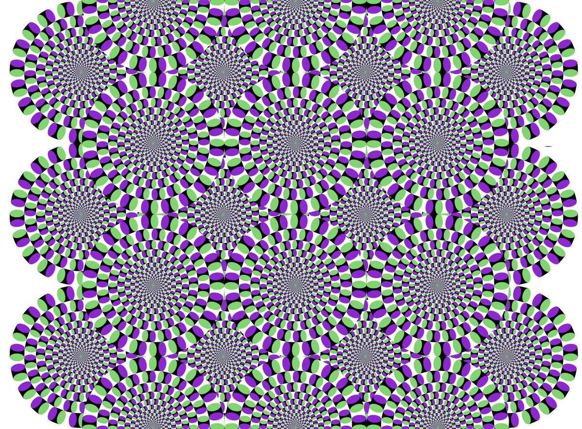 What optical illusion features circles that seem to move in different directions, even though the image is completely still, creating the effect of floating in the background?
