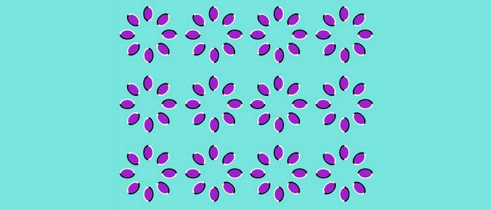 In this illusion, the purple seeds seem to move when you focus on the image. In reality, as with most illusions, our eyes are deceiving us, causing objects that are perfectly still to appear as if they are in motion.