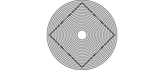 In Ehrenstein's square illusion, the central square appears curved due to the concentric circles in the background. As a result, the square looks warped and distorted, resembling a trapezoid or rhombus.