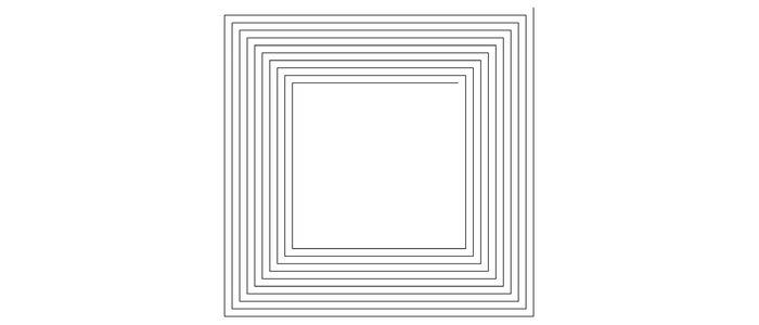 The squares in this image form one continuous line. Although they seem to be a series of nested squares, our brains rapidly interpret them as multiple distinct squares when we look at them.