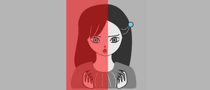 What color is the girl's eye in the red-shaded area?