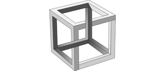 What type of cube appears to face multiple directions simultaneously and is known as an impossible cube, meaning it can be drawn but not constructed, and changes perspective based on your focus?