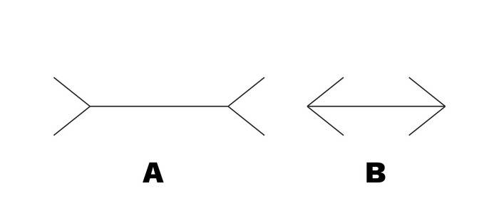 Which optical illusion involves arrows at the ends of lines that create the perception of differing lengths, even though the lines are actually the same size?